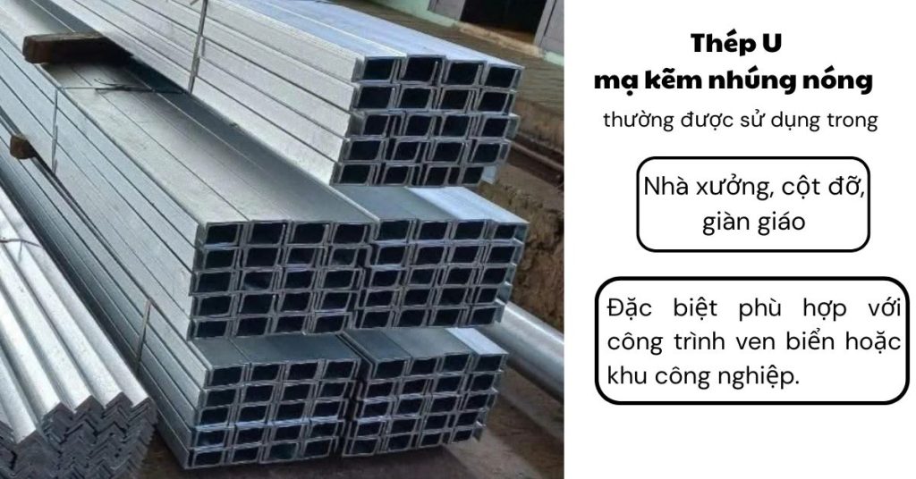 - Với công trình ngoài trời, môi trường ẩm hoặc gần biển: Nên ưu tiên U mạ kẽm, đặc biệt là mạ kẽm nhúng nóng để tăng khả năng chống ăn mòn.