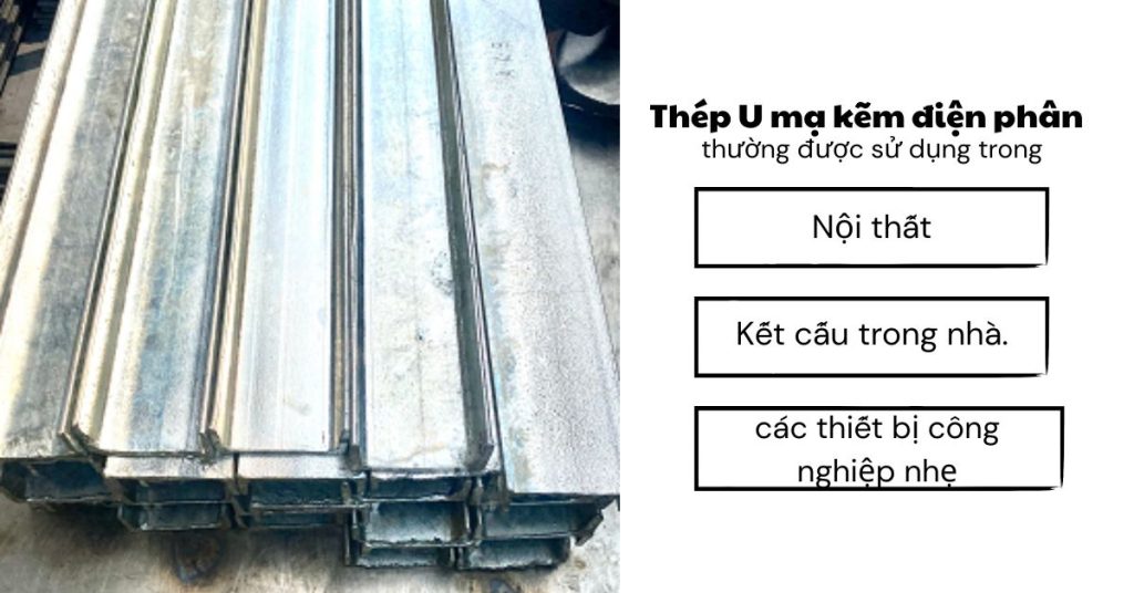 - Thép hình U mạ kẽm điện phân: được phủ một lớp kẽm mỏng bằng phương pháp điện phân. Bề mặt thép sáng, đồng đều và có tính thẩm mỹ cao. Loại thép này có giá thành thấp hơn so với mạ kẽm nhúng nóng.